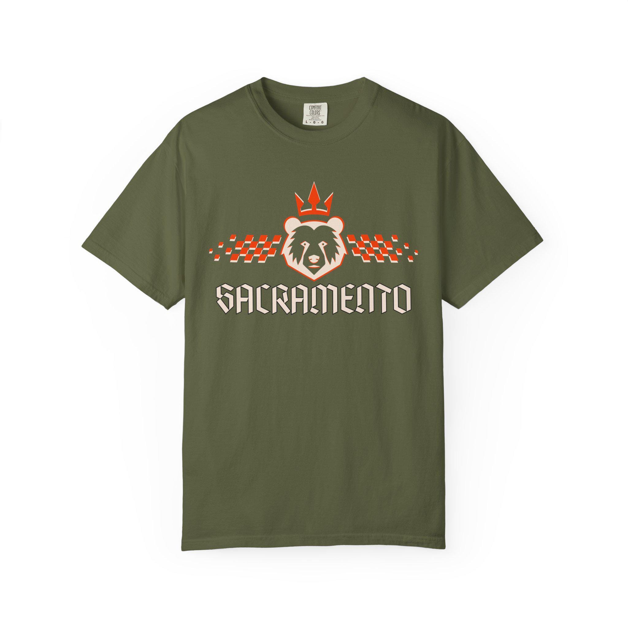 Rep your city with bold energy and elevated style. This heavyweight garment-dyed tee features a striking Sacramento crest design — a crowned bear framed with dynamic detailing that blends street influence with local pride. Clean, powerful, and unapologetically Sacramento. Made from 100% ring-spun US cotton, this 6.1 oz tee delivers a soft, broken-in feel from day one. The garment-dyed process gives each shirt subtle color variation and depth, creating a naturally worn-in look that feels authentic and unique. The relaxed fit drapes comfortably over the body, making it perfect for layering or wearing solo. Built for durability, it features double-needle stitching and tubular knit construction with no side seams for a smooth, structured finish. Whether you're at weekend markets, casual nights out, car meets, or just repping the city daily, this tee moves with you. Available in sizes S–4XL to match your fit and style. Product Features: 100% ring-spun US cotton — soft, durable, and pre-shrunk Heavyweight 6.1 oz fabric with relaxed fit Garment-dyed for subtle color variation and lived-in texture Double-needle stitched seams for long-lasting wear Tubular construction (no side seams) Sewn-in label for a clean neckline finish Care Instructions: Machine wash cold (max 30°C / 90°F) Do not bleach Tumble dry low Iron, steam, or dry on low heat Do not dry clean