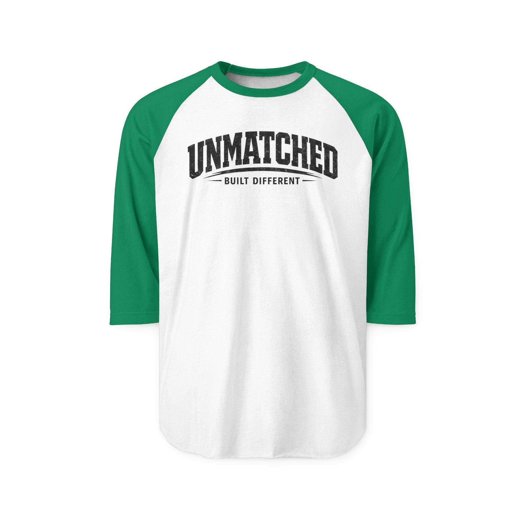 Lightweight and lived-in, this raglan brings a vintage-sport energy to everyday wear. Soft fine-knit cotton and contrast three-quarter sleeves give it that go-anywhere comfort: toss it on for morning coffee, a backyard game, or a low-key night out. The distressed “UNMATCHED – Built Different” chest artwork reads confident without shouting, letting the shirt do the talking while you move through your day. Breathable, pre-washed fabric keeps the fit steady; tear-away labels keep it itch-free. Wear it when you want gear that feels like it’s already a favorite.